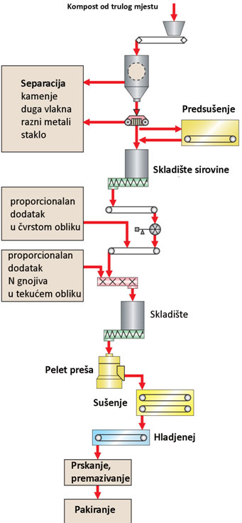 Rezultat: Obrada u kompost / gnojivo Smjesa se pelete