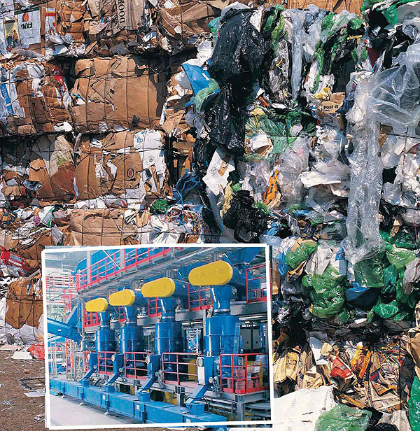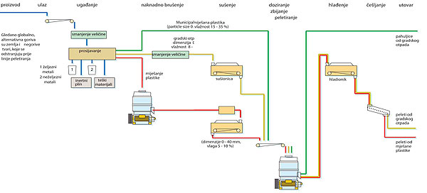 Definiciju komponenti i dimenzije osnovnog materijala, teško je odrediti - nehomogeni materijal. Danas mnoga reciklaža postrojenja koriste Kahlovu ravnu matricu Pelet-preše za peletiranje komunalnog otpada, komercijalnog smeća, odvojeno pomiješana plastika s visoko kaloričnom vrijednosti pretvara se u alternativna goriva u obliku peleta ili fluffa što pospješuje očuvanju izvora fosilnih goriva.